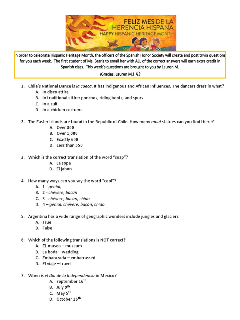 Trivia Questions In Spanish / Aug 18, 2021 · a comprehensive database of more than 35 spanish vocabulary quizzes online, test your knowledge with spanish vocabulary quiz questions.. Plus, they tend to lighten the mood and make people smile. So, what are you waiting for? This post has 50+ interesting and informative world trivia questions and answers related to the geography and history of the world which will help you to boost up your geographical knowledge. They are probably the best questions to ask at pretty much any social event. Our online spanish vocabulary trivia quizzes can be adapted to suit your requirements for taking some of the top spanish vocabulary quizzes.